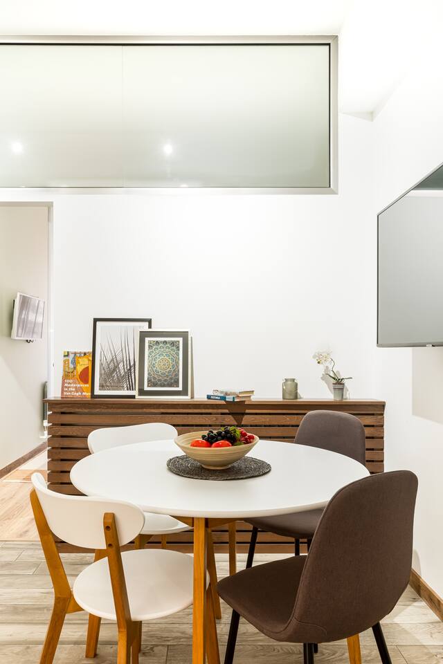 1. There will be an additional 'linen' charge for who use sofa-bed and/or travel-cot. Guests must request the extra sleeping place before booking. 2. The apartment will have Starter Luxury Hotel Toiletries, fresh linen and towels. Stays that are longer than 20 nights will receive a fresh linen and towels, starting on the 10th day from arrival. You can request additional cleaning, but there will be an extra charge for this service. 3. A starter supply of household cleaning and hygiene products will be available in the property for use as well as tea, coffee and water to get you through your first morning. The guest is responsible for purchasing any additional supplies 4. Please note, If you need a FREE early check-in or late checkout, we can only confirm if it is available the same day of your check-in/checkout, as it depends on if there are other reservations back to back with yours. 5. If the listing mentions Netflix or other streaming platforms, it refers only to the availability of the app on the smart TV. We no longer provide shared or corporate accounts. Guests must log in with their subscription after check-in.