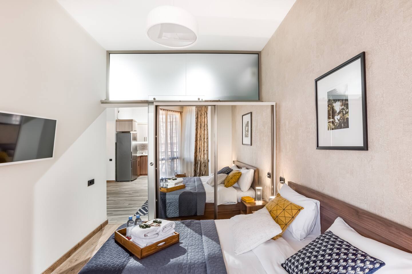 Is it a luxurious five-star hotel or an apartment building? That is the question. Combining the premium amenities with the space and privacy of a home, this beautiful new build offers the epitome of sophisticated city living. Two apartments literally next to each other both available to rent through Airbnb. The apartment is newly refurbished and decorated by local designers. Supplied with premium linen and towel sets as well as an organic hotel quality amenities bundle. Located in the vibrant city centre minutes walk from all the cool spots and attractions. 2 min walk from the famous wine street Saryan, a 24/7 supermarket and cafes, and right at the steps of lovely Boulevard Park, with nice fountains, and lots of entertainment places around. Your private apartment is just part of the package; don't forget about the great team that will be supporting you throughout your stay in case you need anything! We provide 24-hour assistance to our guests and are always happy to share our fav spots in Yerevan and Armenia.