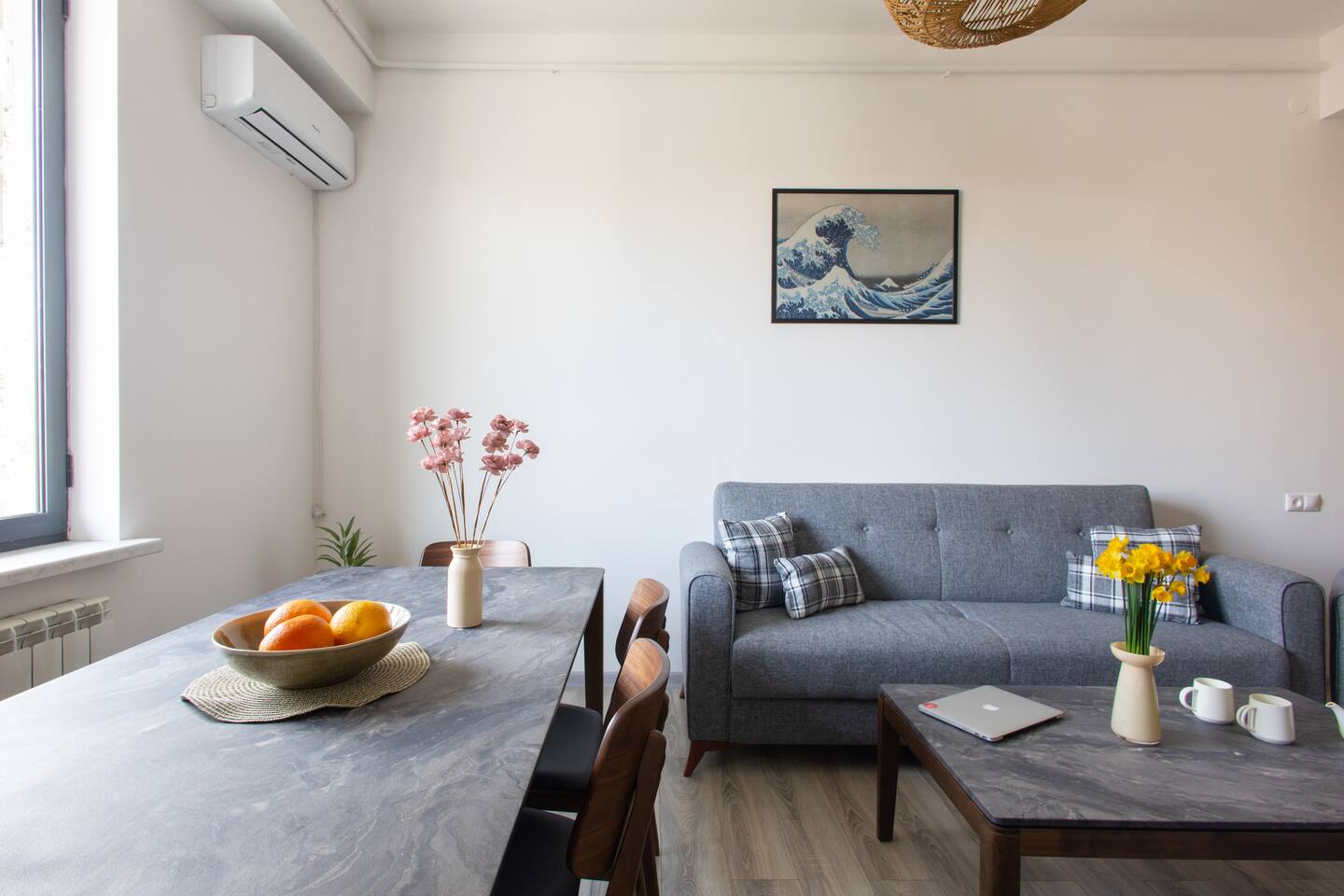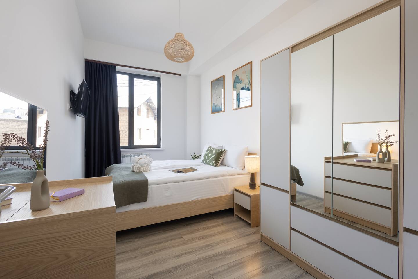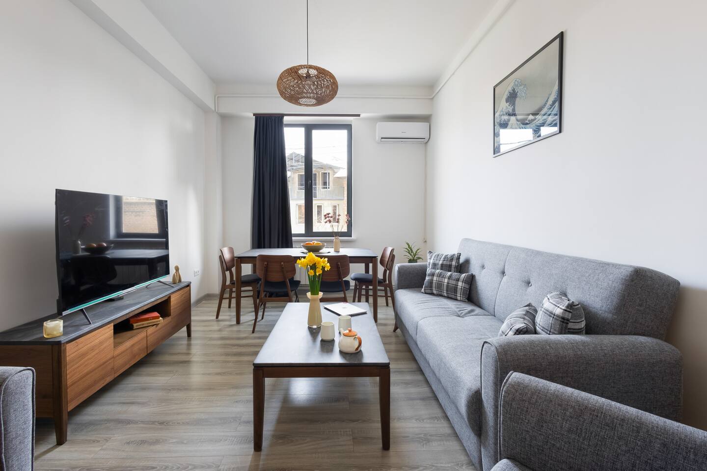 Welcome to 'Monarque " by Hotelise This modern and cozy apartment is located in one of Yerevan’s most peaceful and scenic areas — Monument, Vahagn Davtyan 1/4. Enjoy fresh air, beautiful city views, and a quiet neighborhood just minutes from the Cascade and city center. Perfect for travelers who want both relaxation and easy access to Yerevan’s main attractions. The area is considered one of the most elite residential districts in Yerevan, offering a perfect balance between tranquility and convenience. Surrounded by greenery and elegant residential buildings, the neighborhood is ideal for guests who want to enjoy a quiet, safe, and comfortable stay while still being close to the city center. The famous Monument Park area is just a short walk away, where you can enjoy panoramic views of Yerevan, Mount Ararat on clear days, walking paths, and relaxing outdoor spaces. The Cascade Complex, cafes, restaurants, and central Yerevan are only a few minutes by car. The apartment itself is located in a newly built, modern elite building with a clean entrance, secure access, and a well-maintained environment. The building offers a peaceful residential feel, perfect for both short and long stays. Inside, the home is bright, stylish, and thoughtfully designed with a modern aesthetic. The apartment features contemporary furniture, clean lines, and a comfortable layout that makes you feel at home from the moment you enter. The bedroom is spacious, bright, and designed for maximum comfort and relaxation. It features a high-quality, comfortable mattress that ensures a restful night’s sleep after a day exploring Yerevan. In the living room the bed turns into a comfortable sofa -bed. Make your stay unforgettable with Hotelise