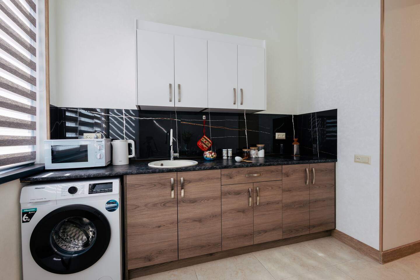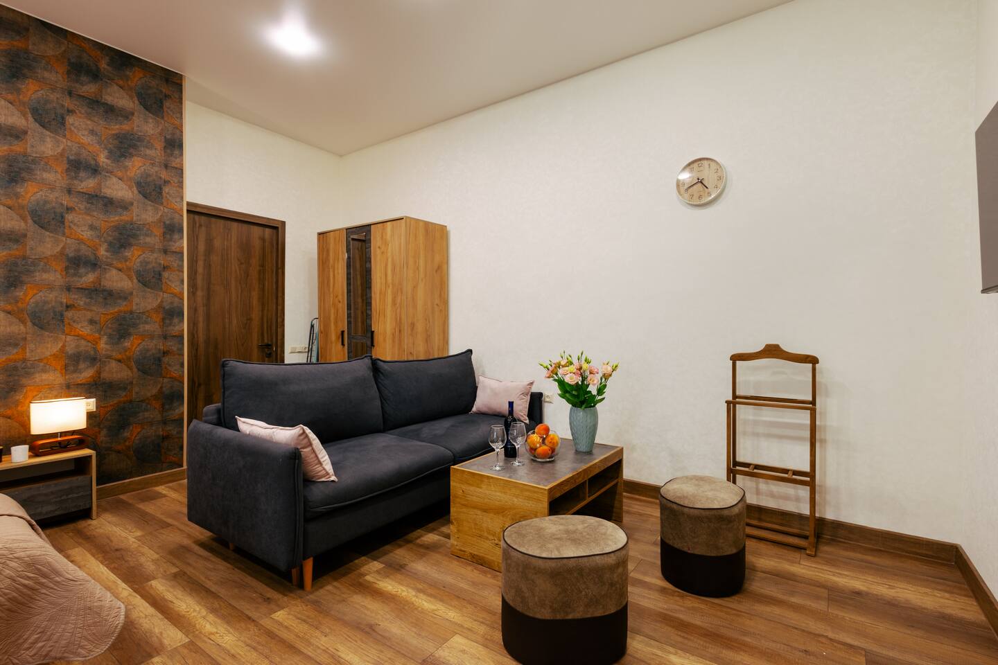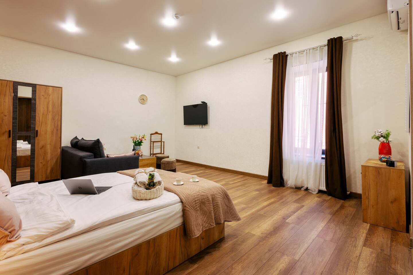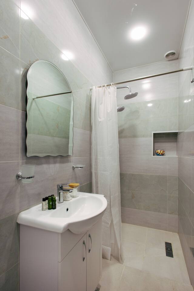 Welcome to Whiskey Studio by Hotelise, an affordable and comfortable stay in the heart of Yerevan. Alongside its neighboring studio, Scotch, this project is designed to offer a clean, well-thought-out space with everything you need, without the frills of luxury. Perfect for travelers who value location and comfort, Whiskey Studio provides a quiet retreat in the bustling city center. Location: Situated on the first floor, the studio overlooks a peaceful courtyard, offering a tranquil escape despite its central location. You’ll be steps away from the city’s main attractions, yet able to enjoy a serene environment when it’s time to relax. Studio: The studio is an open and inviting space, featuring a comfortable sofa bed with a coffee table, ideal for unwinding in front of the Smart TV. The bed, with its king-size frame and premium mattress, ensures a restful night’s sleep. Bedside tables with lighting and a spacious wardrobe provide all the storage and convenience you need, keeping the space functional and uncluttered. Kitchen: The fully stocked kitchen is designed with practicality in mind, offering plenty of storage, a stove for cooking, and a microwave for quick meals. The dining table comfortably seats four, making it a great spot for meals or casual gatherings. A fridge and washing machine add to the convenience, ensuring all your needs are met during your stay. Bathroom: The bathroom is clean and modern, featuring new tiles, a shower set, a mirror vanity unit, and a toilet. It’s equipped with our organic and sustainable toiletries, reflecting our commitment to quality and environmental responsibility. Whiskey Studio is all about offering a comfortable, central stay in Yerevan without breaking the bank. It’s not about luxury—it’s about providing a clean, thoughtfully designed space in a prime location, perfect for those who want to be in the middle of it all. Welcome to your home away from home, where simplicity meets comfort, right in the heart of the city.