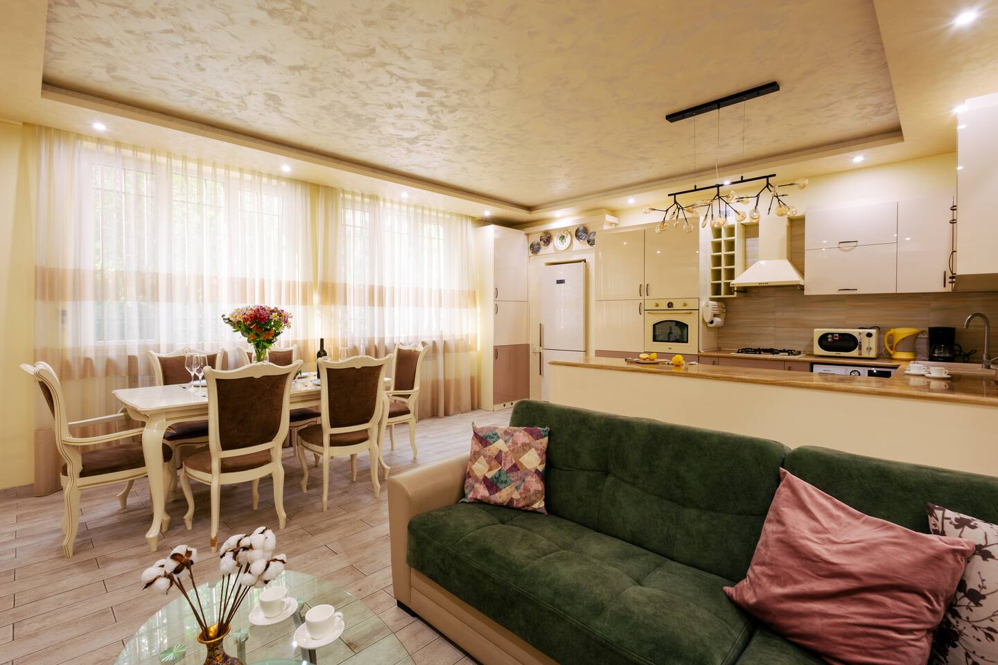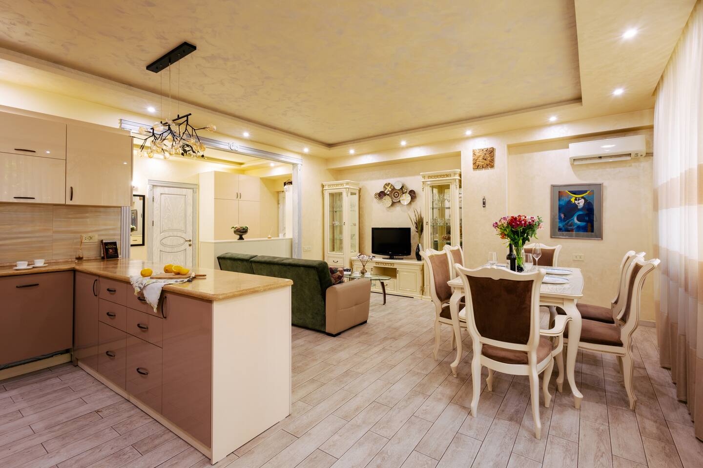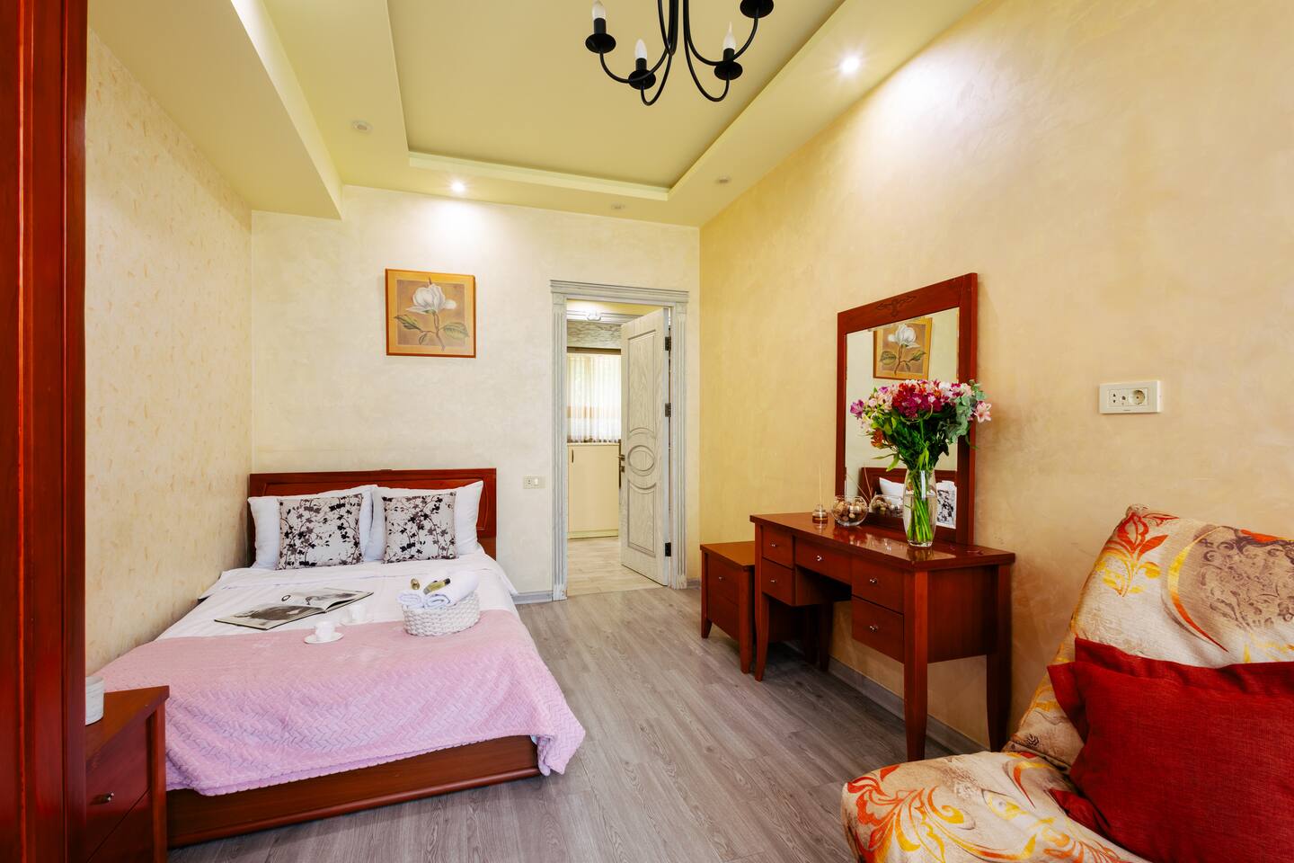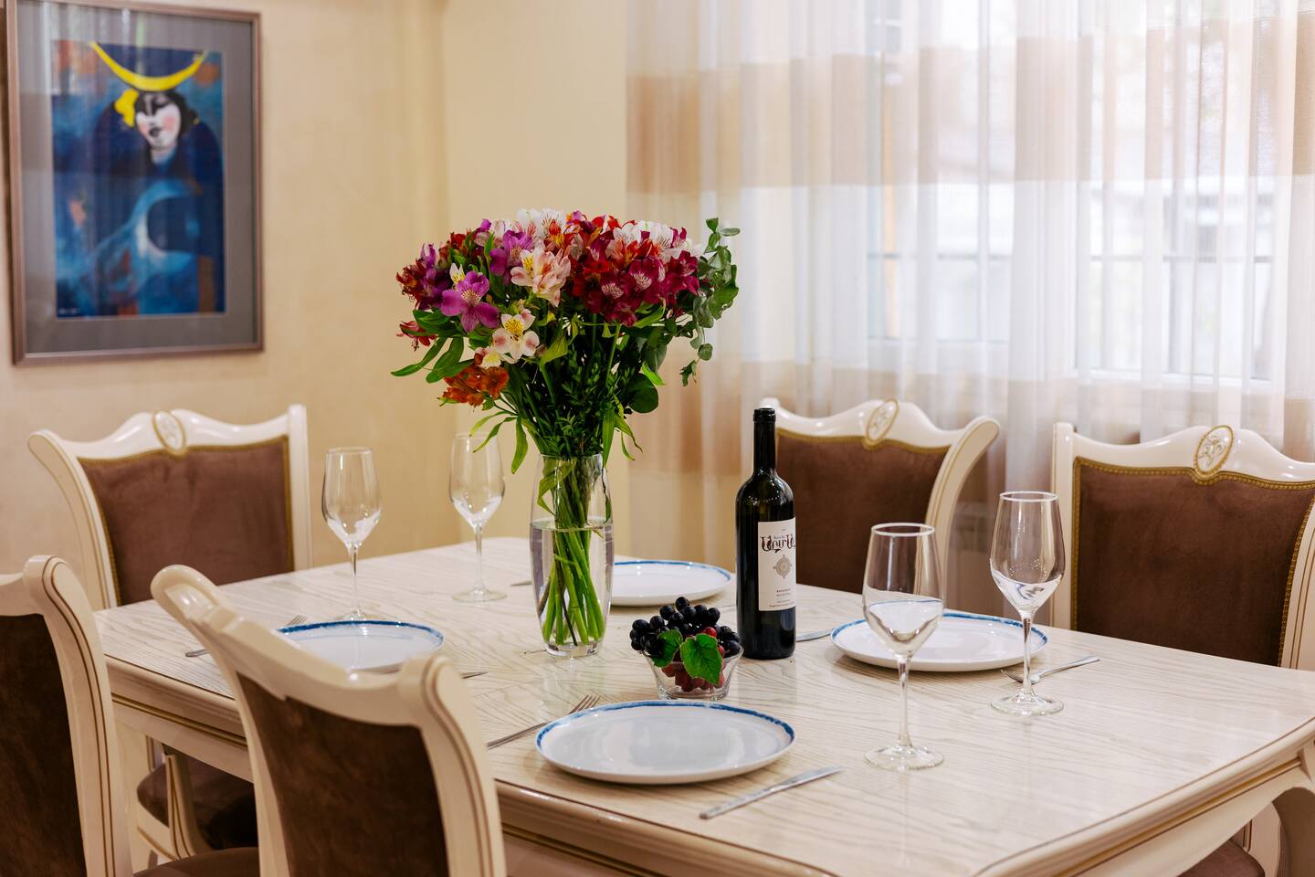 Welcome to "Zircon" by Hotelise – A Spacious Stay in Central Yerevan "Zircon" is an apartment offering plenty of space and comfort, with a touch of old-style charm. While the interior does not reflect the very modern style refurbishment, this apartment is perfect for those seeking ample sleeping arrangements in the heart of Yerevan. With 2 large bedrooms and plenty of sleeping options, including 2 sofa beds, a king-size bed, and a single bed, this home is ideal for families or larger groups. Location: Situated on Yeznik Koghbatsi Street, 2, the apartment offers a fantastic central location. You’ll be just steps away from supermarkets, coffee spots, parks, and within minutes of Republic Square, Saryan Street, and Aram Street, where Yerevan's best entertainment can be found. Despite being in such a prime spot, the building is tucked away from the street, ensuring a quiet stay. Living Room with Kitchen: The open-plan living room features a large L-shaped sofa, perfect for relaxing in front of the TV. A coffee table and large dining table for 6 provide space for meals and socializing. The kitchen is well-equipped, with an oven, microwave, washer, and coffee machine. There’s plenty of storage and all the cooking essentials you need. The room also benefits from a large A/C unit to keep you cool, as well as a full-length mirror that adds to the spacious feel. Bedroom 1: This large bedroom features a queen-size bed with bedside tables and soft lighting, perfect for a relaxing night's sleep. A chest of drawers with a mirror and a wardrobe offer plenty of storage space. The room also has blackout curtains to ensure a restful stay. An ensuite bathroom with a bathtub adds extra convenience. Bedroom 2: The second bedroom includes a single bed, a sofa that converts into a sofa bed, and a wardrobe for storage. Like the main bedroom, it is equipped with blackout curtains for comfort. Bathrooms: The ensuite bathroom in the main bedroom includes a bathtub, while a second full bathroom with a shower cabin is available for the rest of the apartment, making it ideal for larger groups. At Hotelise, we pride ourselves on offering comfortable, well-located spaces that make your stay memorable. "Zircon" combines space, convenience, and a central location, making it perfect for exploring Yerevan.